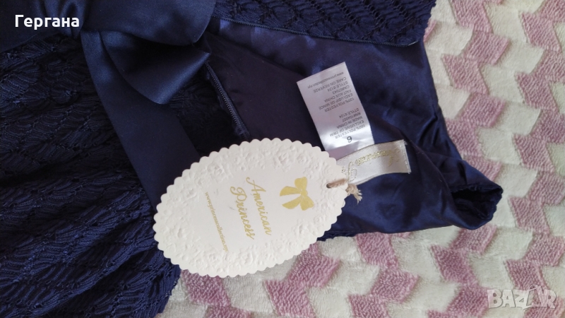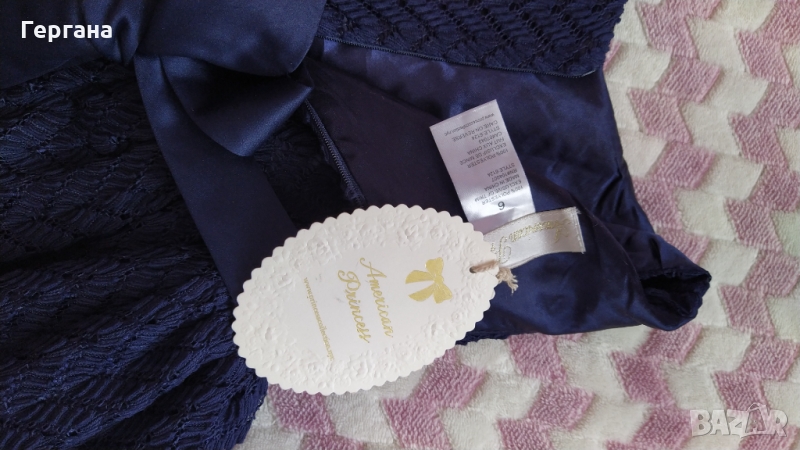 Роклята е нова, много красива, стилна ,за 6г.цветът е тъмно син,на марката American Princess