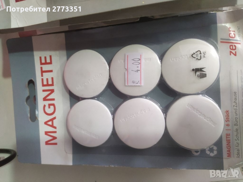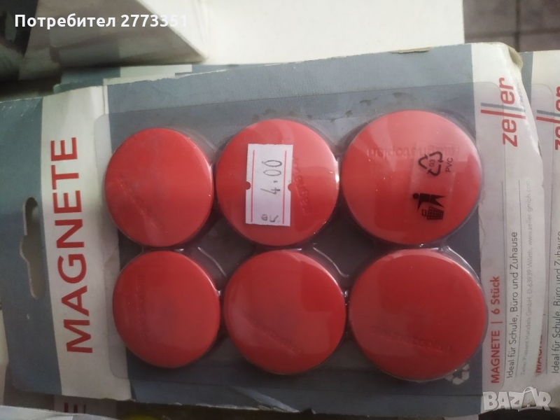 Силни магнити за магнитно табло марка Zeller 6броя в комплект цена 4лв за комплект!