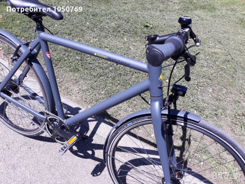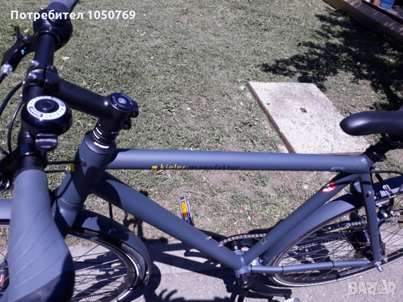 Продавам страхотен фитнес велосипед. Изключително лек. С осем вътрешни скорости на shimano Nexus. В предната главина с динамо захранващи фар axa BlueLine 30 lux и заден стоп закачен за вилката. Твърда вилка. За пълна спецификация и цена в сайта на производителя - Kieler Manufaktur. Рамката е удобна за височина 1.70-1.90. За въпроси моля на лично съобщение. Внесен от Германия.