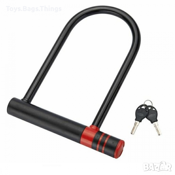 Катинар за велосипед , Заключващо устройство сключ, U образно, Черен.
