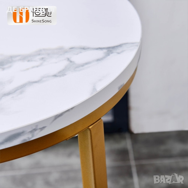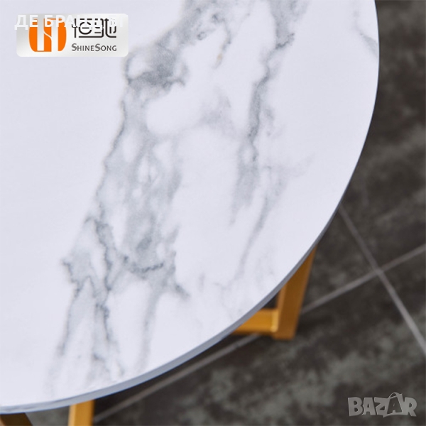 Дизайнът на масата и плотът, имитиращ мрамор