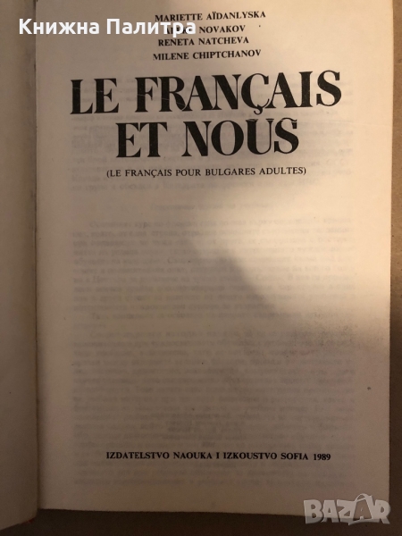 Le français et nous Le français pour bulgares adultes Mariette Aidanlyska, Aleko Novakov, Reneta Nat → Обява 36069732