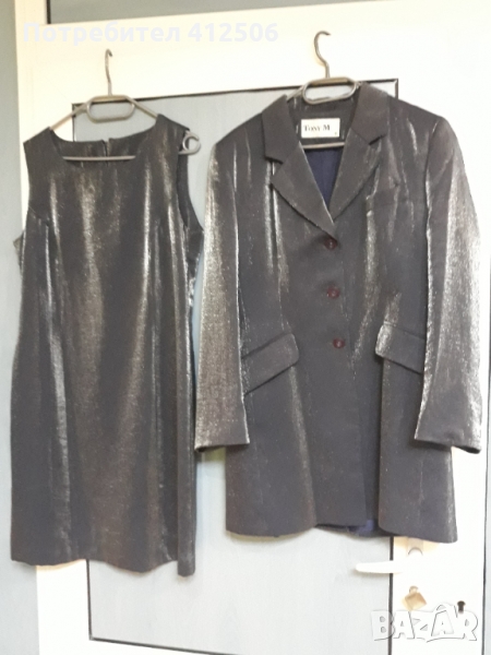 Продавам дамски костюм -сако и рокля ,100% полиестер на фирма