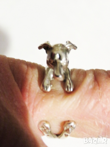 Уникален старинен сребърен пръстен с куче, кученце, куче Джак Ръсел сребро