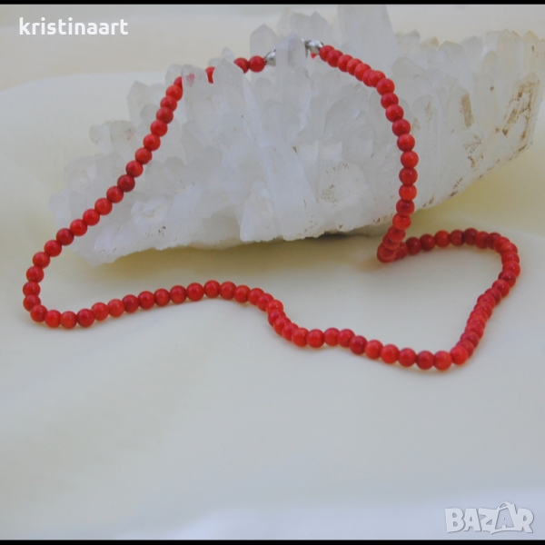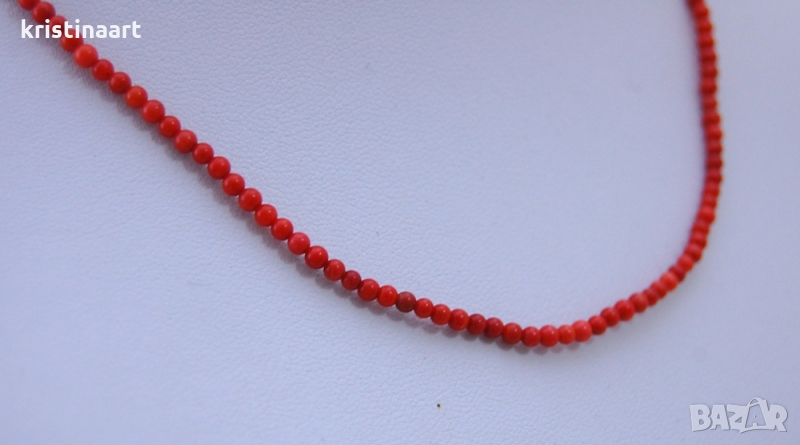 Колие от червен корал ,2-3мм → Обява 36075000