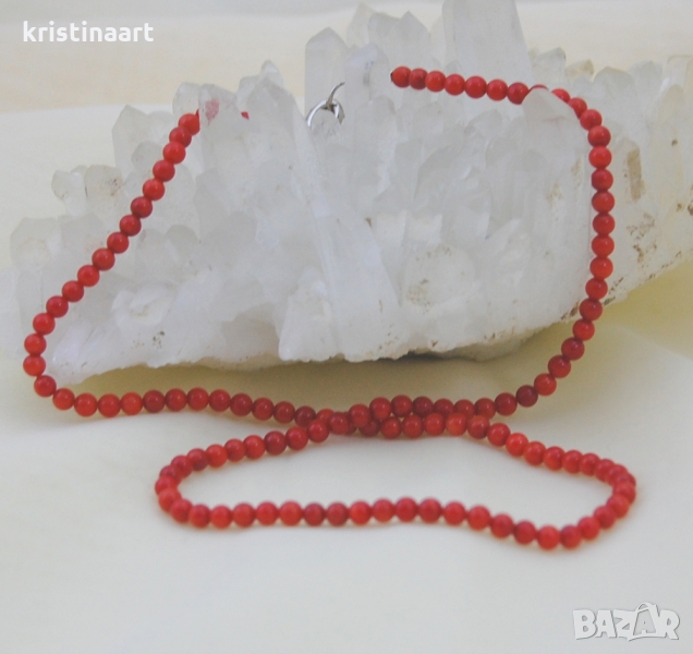 Колие от червен корал ,3-4мм → Обява 36075002