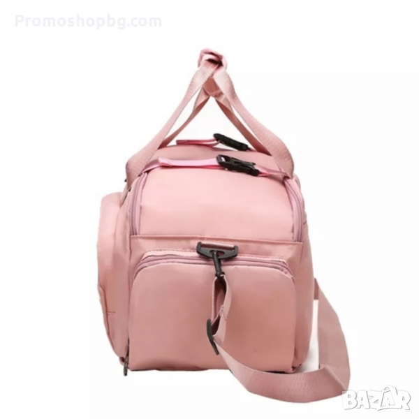 Сакът разполага с няколко отделения - за обувки, мокро отделение (за мокри дрехи, кърпа, вода и др.) и сухо отделение, както и допълниелен страничен джоб с цип.