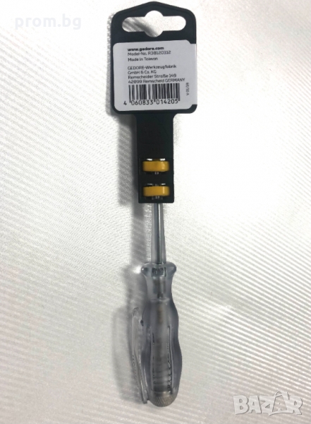 фазомер. Изработен от удароустойчива и прозрачна пластмаса. Устойчив при продължителна употреба. Обхват на измерване 105 - 250 V. Използва се както като отвертка, така и за откриване на напрежение/фаза/ в посочения диапазон. С вградена индикираща лампа. Размери на металната част 70 мм 3,0 мм. Размери на артикула Д x Ш x В 12 x 11 x 12 мм. Тегло на артикула 80 г.