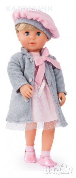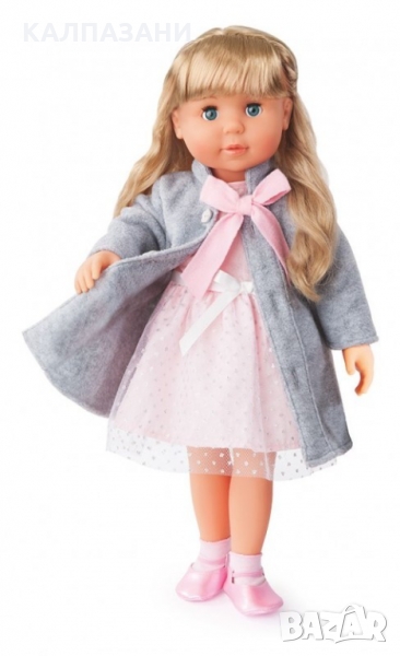 Куклата се предлага в два варианта - с розово и със сиво палто.