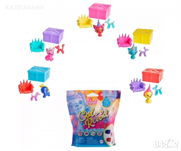 Домашните любимци Barbie® Color Reveal™ доставят истинско удоволствие при разопаковането, тъй като са пълни с изненади – цели пет на брой!