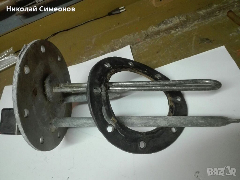 Фланеца,видно от снимките е готов за монтиране към водосъдържателя.Две термо защити и нагревателя, чакат да бъдат окабелени /свързани/от ел.монтьор,за да сте спокойни.Препоръчително е да се смени обратният клапан с нов.