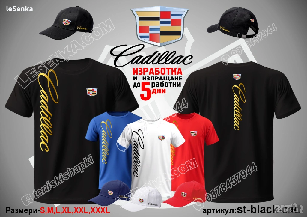 Посочената цена е за шапка и тениска комплект. Само шапка - 18 лв. ,а само тениска - 32 лв. Тениските са изработени от качествена памучна материя - различна номерация и цветове - черен, син, червен и бял. Шапките са памучни с метален клипс или коланче за регулиране - тип бейсболни. Последната снимка в обявата е на таблица с размери за тениските.