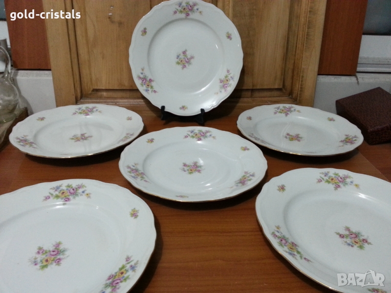 чинии за основно 23см 6 бр 179лв за предястие 6 бр 120лв дълбоки 6 бр-149лв без забележки Чехословакия порцелан сервиз комплект сет лот ретро арт декор винтидж колекция стари антикварни предмети обзавеждане за дома и семейството подходящи за подарък за ценители и колекционери