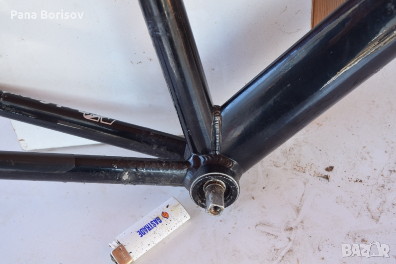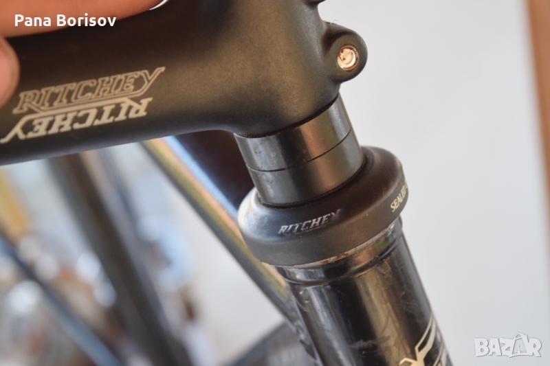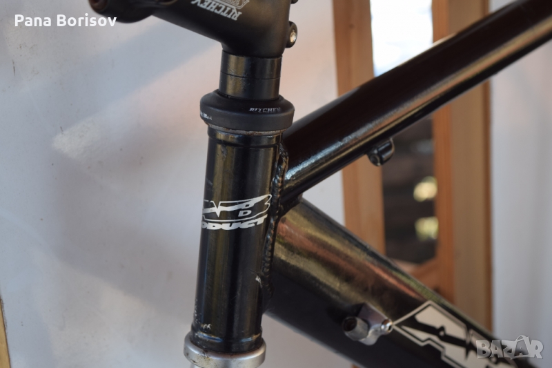 Рамката се намира в добро състояние, като боята до голяма част е запазена, като съм се опитал да заснема всички забелжки . Рамката е с размери 54см вертикална тръба и 56см. хоризонтална тръба. В комплекта са включени вилкови чашки Ritchey, колче за кормило Ritchey, както и средно движение(върти се перфектно) + адаптори за жила Shimano. Рамката ще има нужда от седалково колче 27.2мм, като задното разтояние между ушите е 130мм.