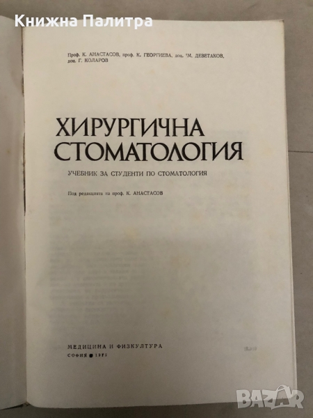 Хирургична стоматология Учебник за студентите по стоматология К. Анастасов, К. Георгиева, М. Деветак → Обява 36085530