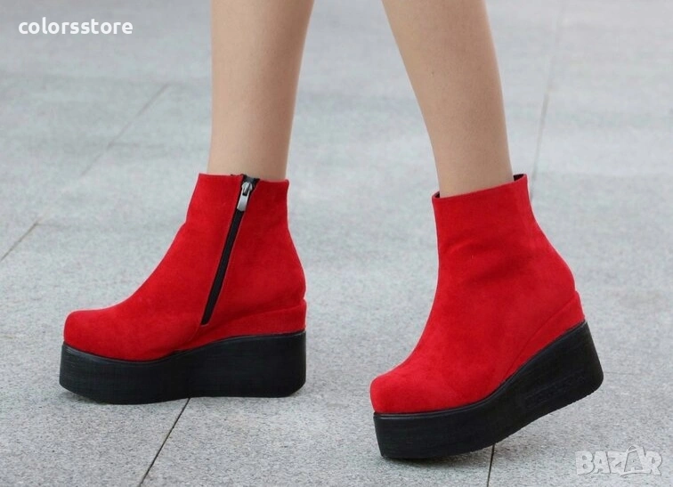 Боти на платформа - червен велур с черно ходило - 130K → Обява 36085556