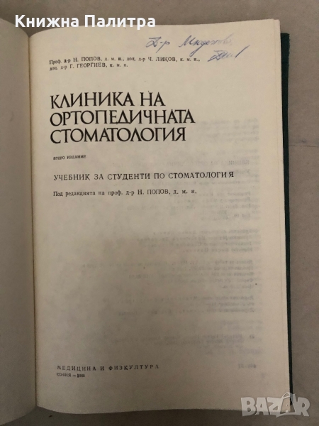 Клиника на ортопедичната стоматология Учебник за студенти по стоматология Н. Попов, Ч. Ликов, Г. Гео → Обява 36085675
