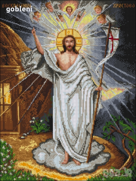 гоблен "ВЪЗКРЕСЕНИЕ"Д 42; шев 1:1; размери 22*30 см.; 27 цвята; 32 лв., снимка 1 - Гоблени - 36086150 гоблен "ВЪЗКРЕСЕНИЕ"Д 42; шев 1:1; размери 22*30 см.; 27 цвята; 32 лв., снимка 2 - Гоблени - 36086150 1/2