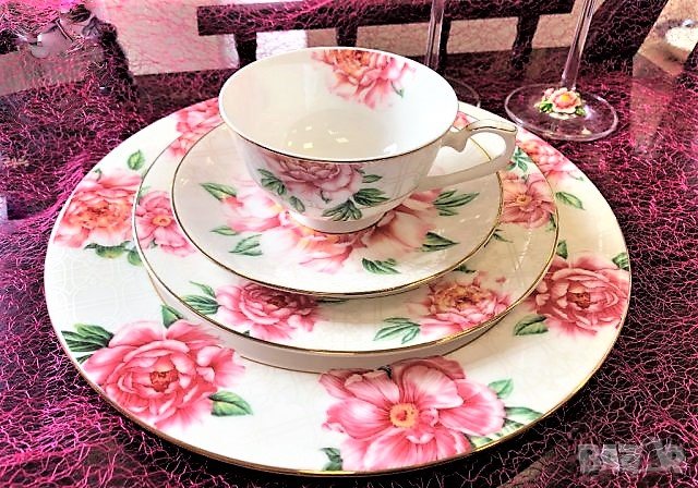 Изящен и стилен комплект - 4 части, чаши с чинийки за чай, кафе, капучино, горещ шоколад и др.