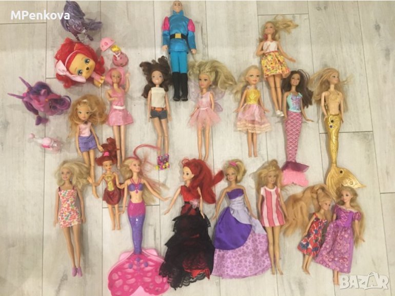 Кукли Барби цена на бройка 20 лева, комплект джунгла с куклички 10 лева, куфар на мини Маус с аксесоари 12 лева.