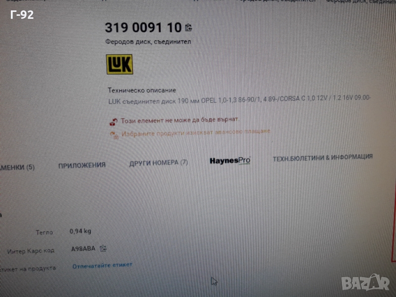 319009110**NEU**LUK**OPEL**ФЕРОДОВ ДИСК**СЪЕДИНИТЕЛ **