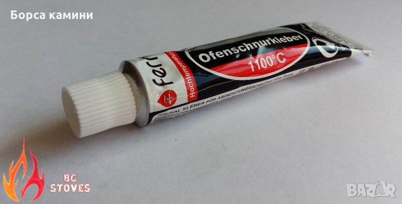 Това лепило се използва за залепване на уплътнения на врати на камини и печки, както и за залепване на други изделия, които са изложени на висока температура. Предлаганото количество е достатъчно за залепване на два метра фибростъклено уплътнение за врата.