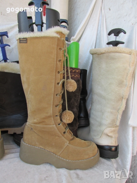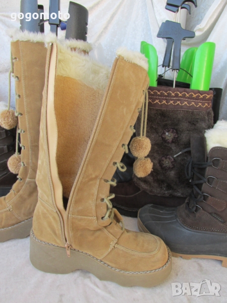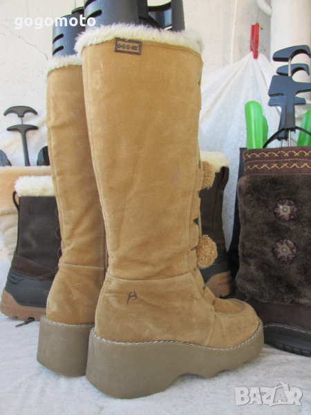 топли пухкави дамски ботуши HIS®, боти, апрески бежави на платформа - 37 - 38, идеално запазени, малко употребявани, буквално броени пъти, без забележки! Топла подплата от силиконови фибри = полар.