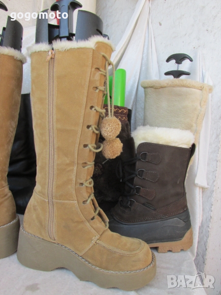Номера е 37 - 38, а стелката измерена е 23.5 см. Високи са 40 см., обиколка най-горе - 38 см. + разширител от връзките, обиколка на глезена 30 см., платформа при тока - 6 см.