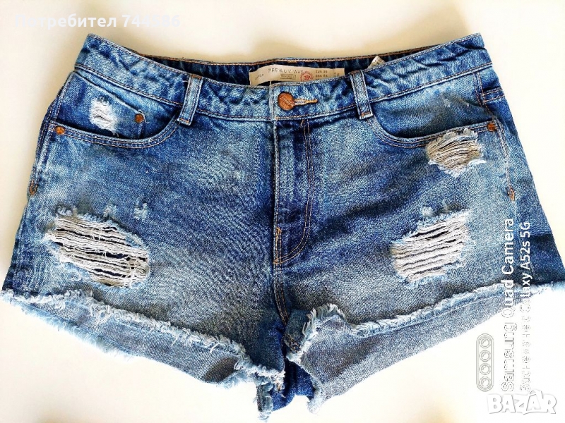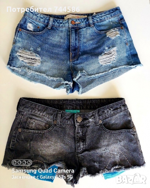 Късите панталони са много запазени,ето и размерите:черните сус сините джобчета :размерите:талия 40 см по 2 =80 см,дължина 25 см,закопчават се с цип,дължината до чатала 22 см, отговарят за М и другите сините ЗАРА :талия 40 см по 2 =80 см,дължина 25 см,закопчават се с цип,дължината до чатала 24 см.Със спиди доставката е най-евтина в момента около 4 лв до офисс преглед и тест.