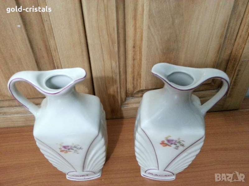 Стар български порцелан канички масло и оцет сервиз комплект сет лот ретро арт декор винтидж колекция стари антикварни предмети обзавеждане за дома и семейството подходящи за подарък за ценители и колекционери