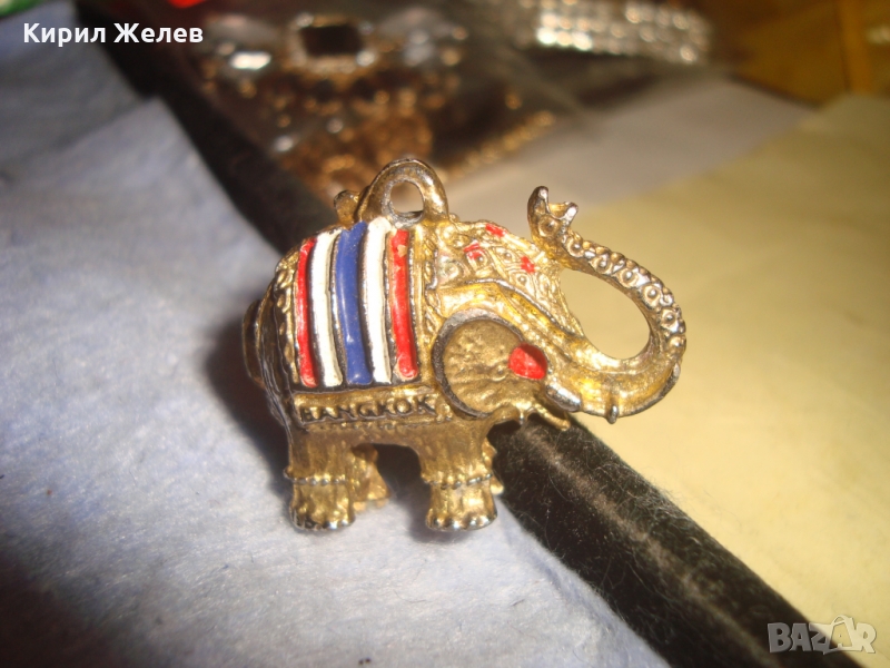 ТАЙЛАНДСКО КРАСИВО ОЛОВНО СЛОНЧЕ с ЕМАЙЛ и ПОЗЛАТА МЕДАЛЬОН ТАЛИСМАН СИМВОЛ на ТАЙЛАНД 26107