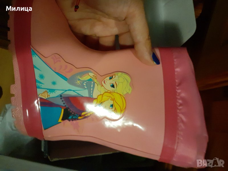 Запазени детски ботуши от естествена кожа вътре с пух,много удобни,но бързо ни умаляха.Номер 27 закупени са за 55 лв.Ботушите на елза и Ана са 13 лв