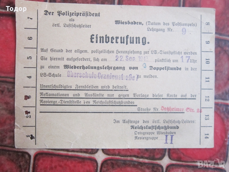 Стар немски документ повиквателна 3 райх → Обява 36098619