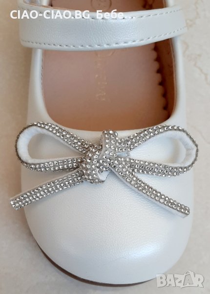 №19-№24, Бели бебешки официални обувки-Балеринки за момиче със сребриста панделка