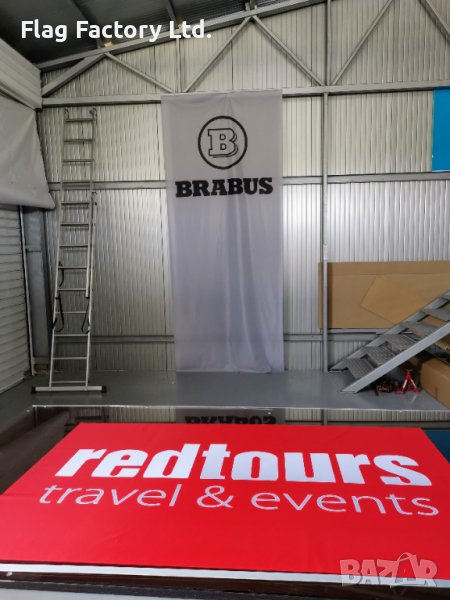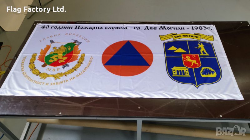 Произвеждаме знамена от 100% полиестерен плат. Цена за м2 печат е 25лв