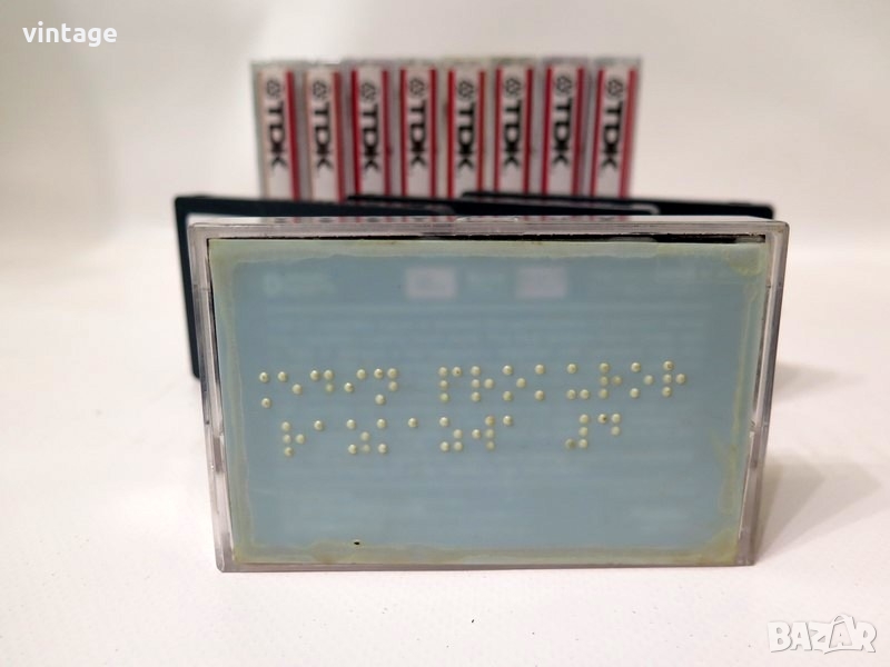 Аудио касети, на първи запис (има записани аудио книги), добре съхранявани, подходящи за презапис. На едната страна А има печат с инвентарен номер, на кутиите има стикер с брайлов надпис. Цената е 1.5 евро/бр, при закупуване на повече от 10 бр. цената е 1 евро./бр. Произведени в Япония! Приложените снимки са реални!