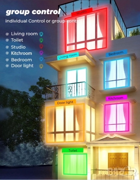 Гласов контрол – работи с Amazon Alexa и Google Assistant за лесно включване/изключване, смяна на яркост или цвят.