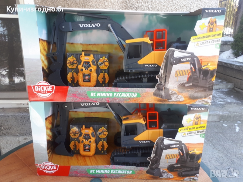 ОГРОМЕН RC рудничарски минен багер Dickey Toys Volvo , 60 см , 3 год + , жълто и сиво