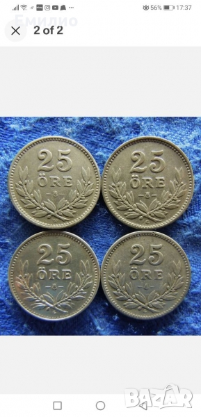 Продавам Сет от 4 СРЕБЪРНИ МОНЕТИ. ШВЕЦИЯ. 25 Оре от 1927