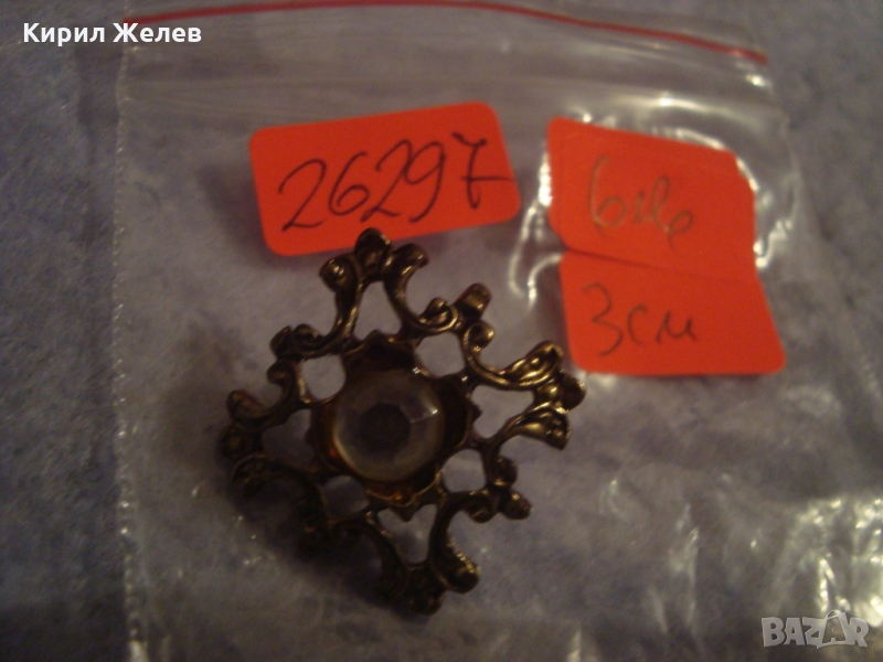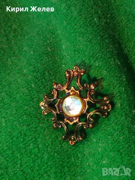 СТАРА РЕТРО ВИНТИДЖ АРТ ДЕКО БРОШКА ЗНАЧКА МЕСИНГ с КРИСТАЛЧЕ 26297