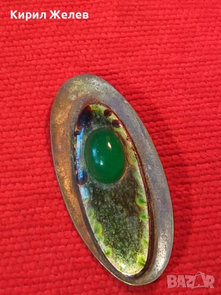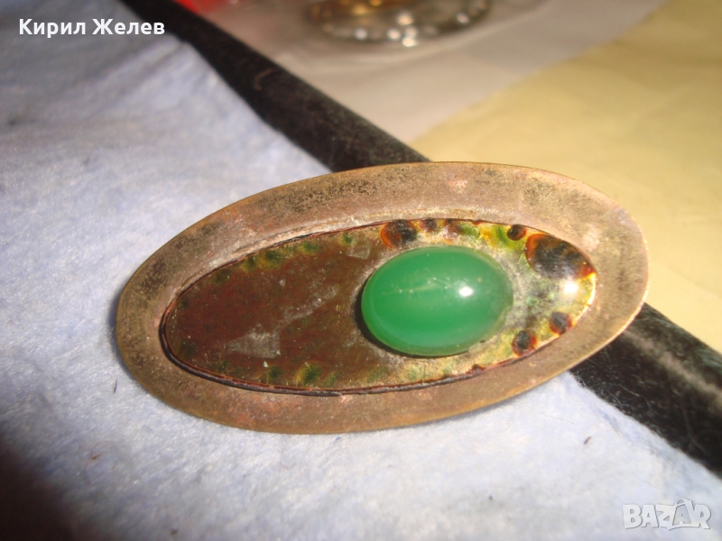 СТАРА БРОШКА с ШЛИФОВАН ЗЕЛЕН АХАТ - КАБОШОН за КОЛЕКЦИЯ 19401