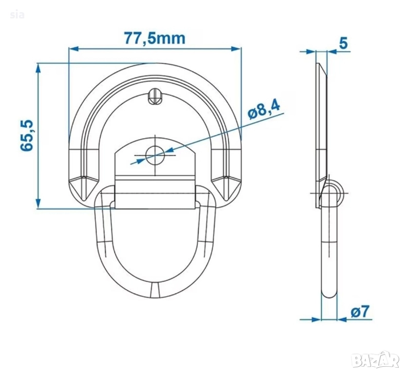 Скоба за ремарке, фиксатор, ухо, подложка, 76x66мм