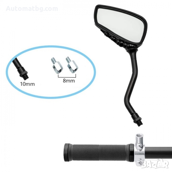 Комплект огледала за мотоциклет Automat, Универсални огледала, 8мм, 10мм, Черни, 2бр.