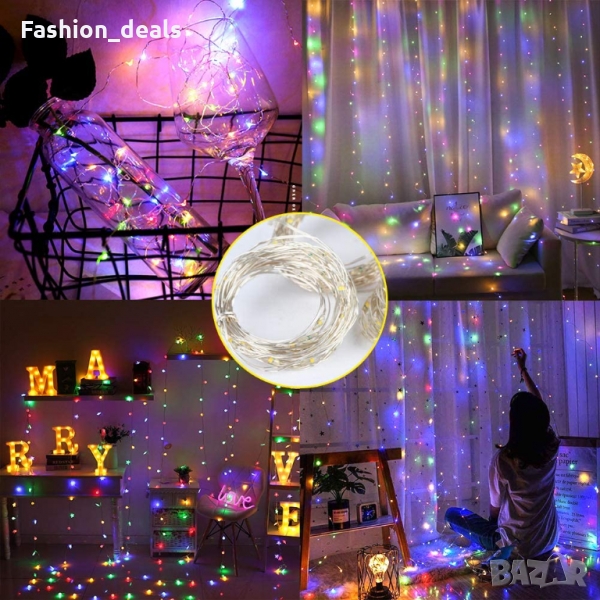 Нови 300 LED феерични светлини Завеса Декорация Медна тел 3 метра Лампички → Обява 36112419