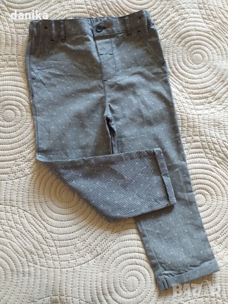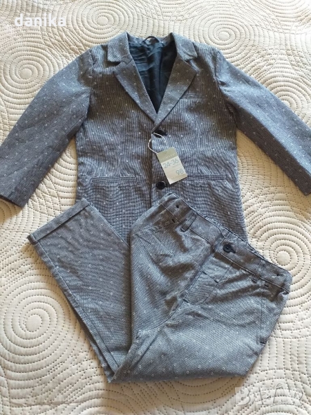 Страхотен мек костюм сако и панталон на Primark за 24-36 м. ръст 98 см. Панталончето е с вътрешно коланче . При интерес ще дам размери.