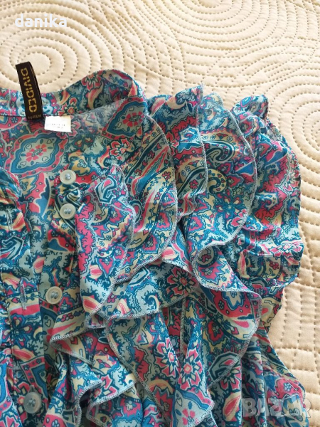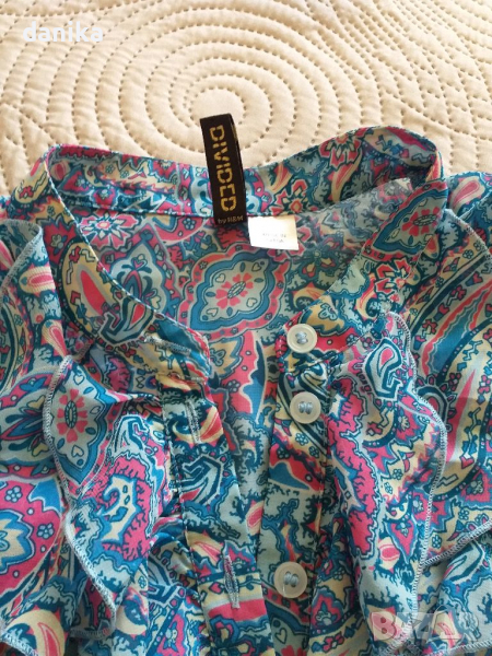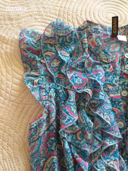 Дамска риза без ръкави на H&M размер XS , но става и за S . Много нежна , множество харбалички. Като нова .