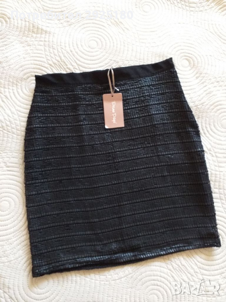 Красива дамска пола с лек блясък . Размер М . Подплата е памучна и разтеглива , горният пласт пада тежко и не се мачка . Много елегантна и удобна .