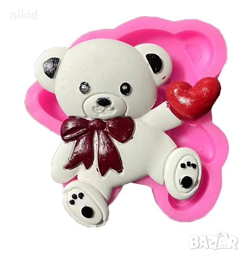 Мече с панделка и сърце силиконов молд форма фондан шоколад гипс → Обява 36118844