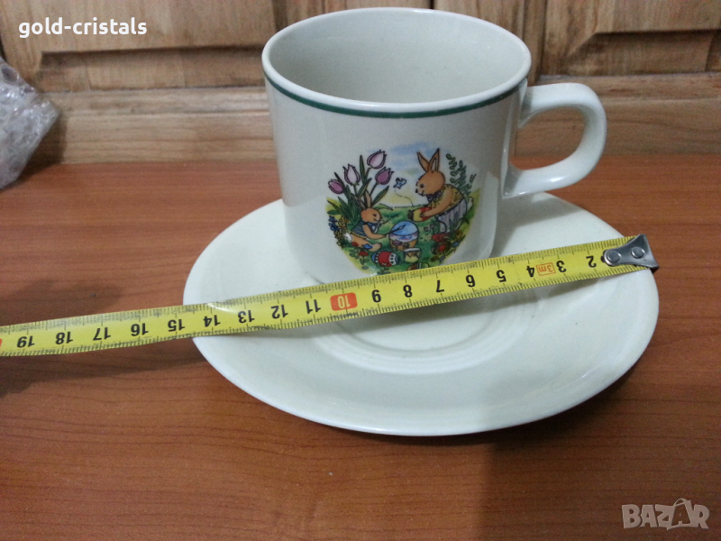 Немски порцелан детски комплект чаша за чай мляко с детски мотиви зайчета Великден без забележки чаша с чинийка -29лв само чаша с забележка -8лв маркирани сервиз комплект сет лот ретро арт декор винтидж колекция стари антикварни предмети обзавеждане за дома и семейството