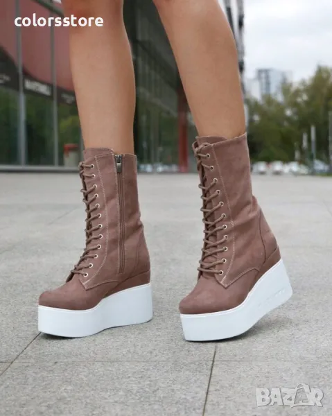 Боти на платформа - кафяв велур с бяло ходило - VP1 → Обява 36119546